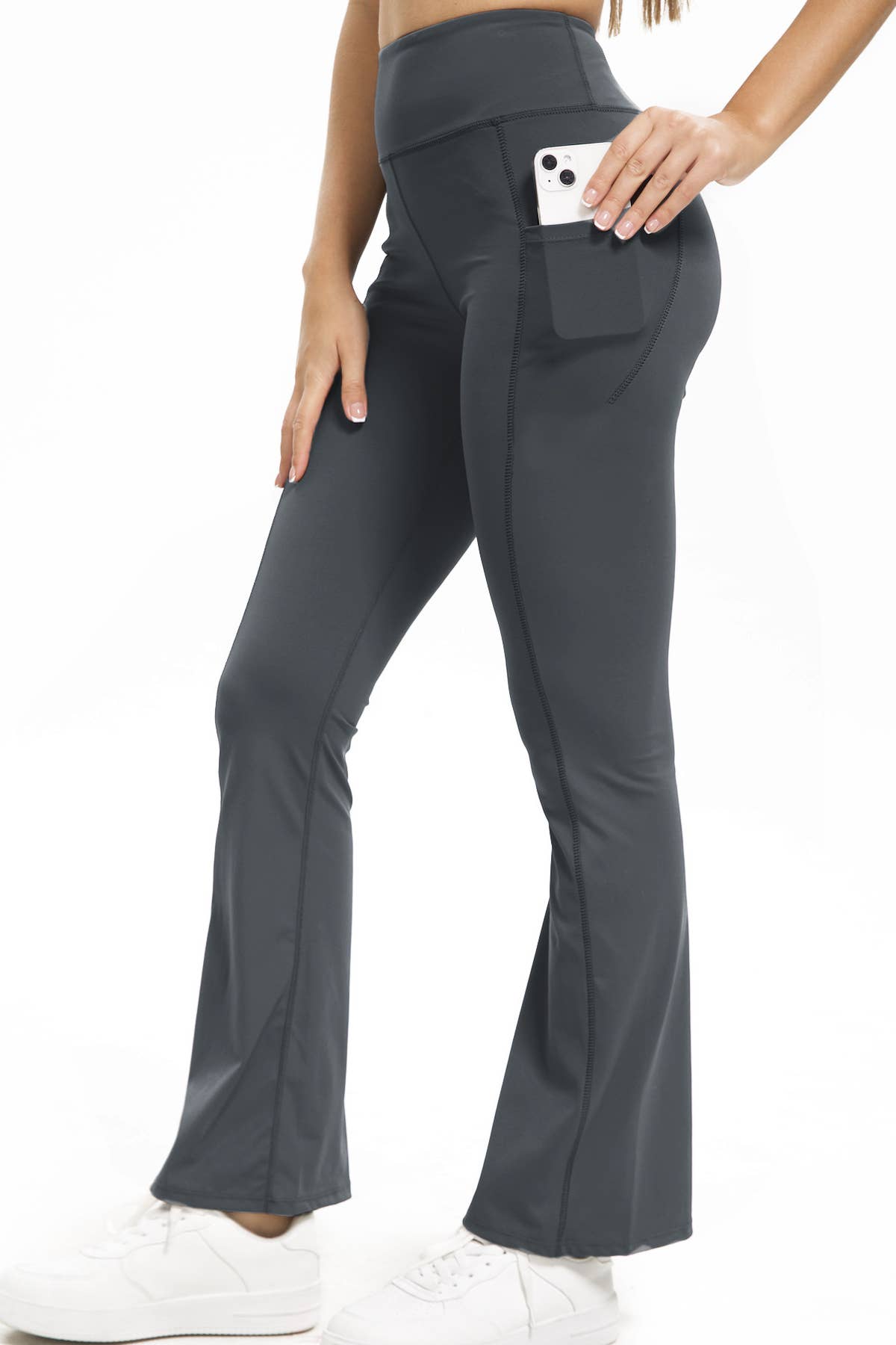 Styling Notes These are the leggings you'll want to live in. Pair with a cropped sports bra and sneakers for the gym, or throw on an oversized hoodie for post-workout coffee runs. The flare bottom works beautifully with chunky sneakers or platform shoes for that perfect '70s-meets-athleisure vibe. Style with a fitted tank and denim jacket for casual weekends, or wear with your favorite longline sports bra for yoga and Pilates. The cellphone pockets mean you can skip the bag and keep your phone secure whether you're on the treadmill or running errands. These are the kind of leggings that blur the line between activewear and everyday wear.